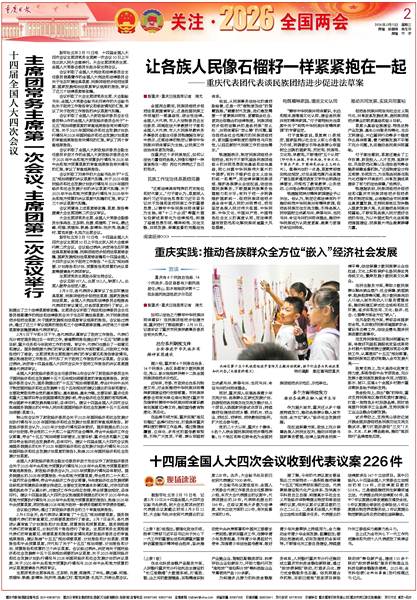 在重庆这个多民族地区,如何以法治力量促进各族人民像石榴籽一样紧紧抱在一起?两位代表表达了自己的观点。