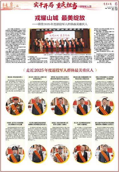 这场颁发仪式,是一次深情的致敬,向脱下军装却从未卸下担当的老兵致敬,向在平凡岗位上续写不凡的奋斗者致敬,向众多扎根巴渝、建功立业的退役军人致敬。这份荣光背后,书写着新时代老兵宣言:军人的本色,不因脱下军装而褪色;奋斗的价值,终将在时代的舞台上熠熠生辉。