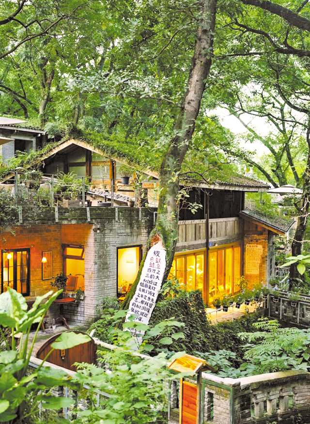“我们最初的规划是从北温泉引水,将这里打造成温泉酒店。”负责项目开发的重庆金刚碑快乐老家商业运营管理有限公司董事冉巍说,按照传统方式建酒店,势必会砍掉部分伸向建筑空间的枝丫。