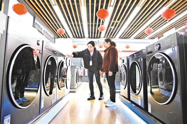 2月7日,垫江县一商场,市民正在咨询和选购洗衣机,以旧换新惠民政策与春节促销活动共同点燃了消费市场。(本报资料图片)特约摄影 孙凯芳/视觉重庆 |