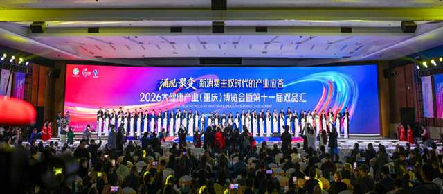 在全场热烈的掌声中,出席开幕式的领导与嘉宾共同登台正式启动本届大会,标志着2026大健康产业(重庆)博览会暨第十一届双品汇全面启幕。