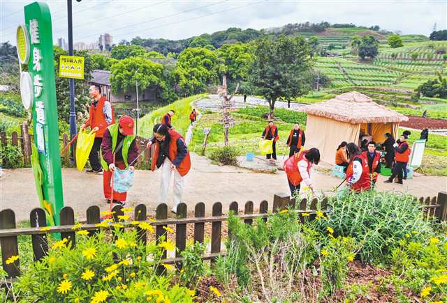 3月18日,永川区胜利路街道,志愿者在一老小区内开展清洁行动。
