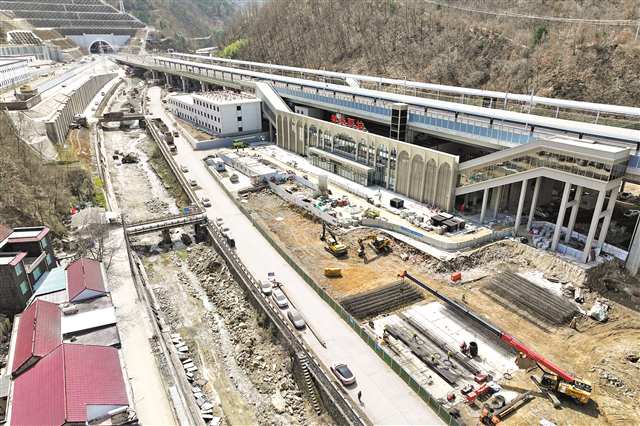建设中的柞水西站(3月20日摄,无人机照片)。