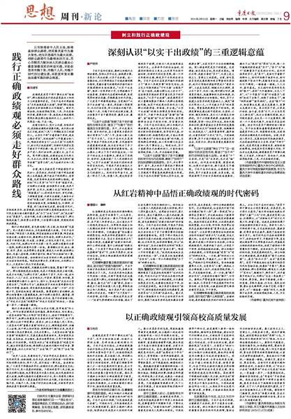 红岩精神彰显着正确政绩观的实践品格,指引我们“靠什么树政绩”。政绩的创造,最终要落到务实的行动和实在的效果上。正如习近平总书记指出:“党员干部干事创业必须实事求是、求真务实,来不得半点虚浮。”南方局创造性地提出并贯彻“三勤”“三化”方针,要求党员深入社会、扎根群众,以“润物细无声”的方式开展工作、积蓄力量。这就是在特殊环境下创造政绩的实践方法论。奉命打入敌人内部的韩子栋,为完成特殊任务,装疯卖傻、忍辱负重长达数年,展现了极致的坚韧与实干。狱中的同志们在极端困难条件下,依然组织学习、开展秘密斗争,甚至通过绝食等方式争取基本权利,将监狱变为特殊的战场和学校,体现了顽强的斗争智慧和实干精神。这告诉我们,实干是最好的承诺,实效是最硬的底气。树立和践行正确政绩观,最终要落到“靠什么树政绩”上,最忌“抓而不实”、追求“虚花假果”。党员干部要发扬红岩先辈们的务实作风和坚韧品格,既要抓“牛鼻子”,聚焦发展短板、群众急难愁盼,精准发力;也要下“笨功夫”,眼睛向下、脚步向下,到矛盾集中的地方去,同群众“坐在一条板凳上”听真话、察实情。要甘于做潜绩,不图一时显绩,多做打基础、利长远、惠民生的事,像红岩先辈那样,不驰于空想、不骛于虚声,以“一锤接着一锤敲”的定力,把蓝图干成实景,创造经得起实践、人民、历史检验的实绩。