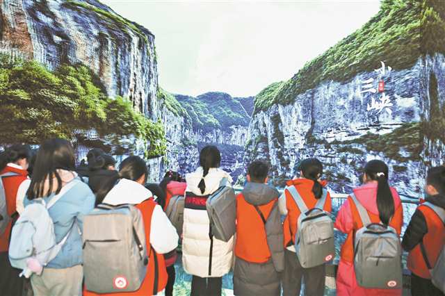 川渝学生走进“千面重庆”数字影院,欣赏壮丽三峡美景。 |