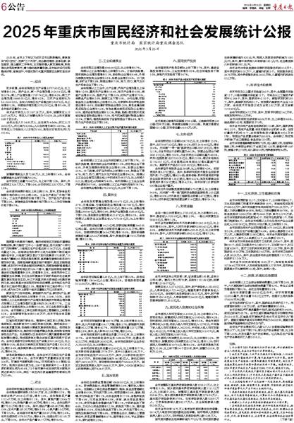 2025年重庆市国民经济和社会发展统计公报