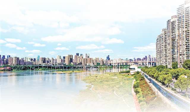 南岸区,蓝天白云下的南滨路雅巴洞江滩公园。(本报资料图片)特约摄影 郭旭/视觉重庆 |