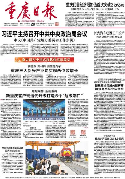 本报讯 (新重庆-重庆日报记者 王亚同)3月26日,市人大常委会党组书记、主任王炯赴果园港国家物流枢纽、重庆国际物流枢纽园区开展可转让货物单证立法调研,并宣讲全国两会精神。他强调,要深入学习贯彻习近平总书记在全国两会期间的重要讲话精神、十四届全国人大四次会议精神和习近平总书记视察重庆重要讲话重要指示精神,全面落实市委工作要求,聚焦重点领域、关键环节,加强高水平立法供给,为重庆加快建设内陆开放高地提供坚强法治保障。