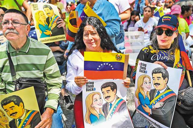 身着委内瑞拉国旗色外套的艾哈迈德告诉记者,马杜罗依然是合法当选的国家领导人,马杜罗夫妇被绑架而来,应该让他们回到自己的国家。