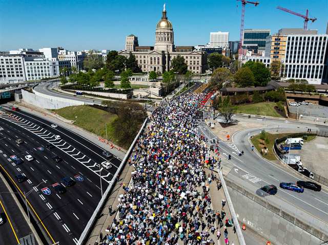3月28日,人们在美国佐治亚州亚特兰大参加抗议活动。新华社/法新 |