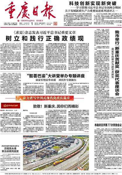 袁家军在讲话中代表市委、市政府向“新重庆贡献奖”获奖者表示热烈祝贺。他指出,党的二十大以来,在现代化新重庆建设实践中,涌现出一大批先进典型和模范人物,为重庆更好以一域服务全局作出了突出贡献。“新重庆贡献奖”获奖者中有大兴实业、赋能高质量发展的领军人物,有潜心钻研、勇攀高峰的科研尖兵,有敬业奉献、创先争优的行业精英,有牢记宗旨、全心为民的基层楷模……集中体现了胸怀大局的家国情怀、勇于创新的攻坚锐气、拼搏奋进的争先姿态、为民造福的奉献境界,生动诠释了“坚韧、忠勇、开放、争先”的重庆城市精神,为全社会注入了强大正能量。
