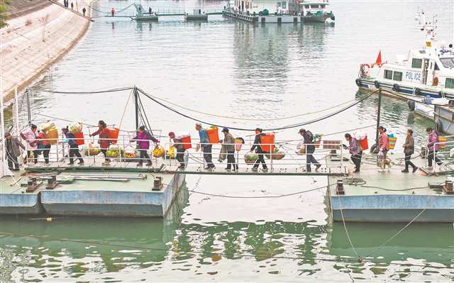 3月31日,忠县洋渡渡口至西山渡口航线上,带着喜悦和幸福的心情乘坐“新渝忠客2180”客轮首航的菜农们一路欢声笑语。 |