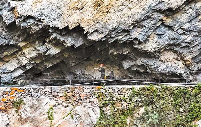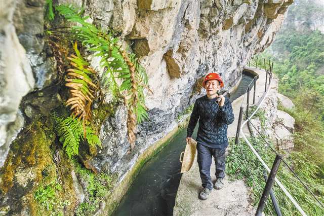 武隆区长坝镇前进村,有一条被誉为“绝壁天河”的扯情岩挂壁水渠,嵌在300米高的喀斯特绝壁上。
