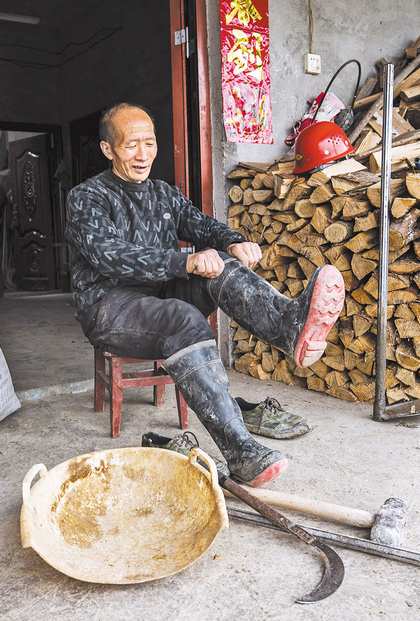 3月25日,李武凤在整理巡渠装备。 |