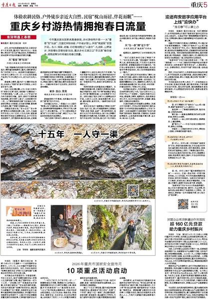 3月25日,武隆区长坝镇前进村,李武凤进行日常巡渠。 |