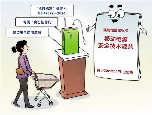 4月3日,强制性国家标准《移动电源安全技术规范》公开发布,将于2027年4月1日实施。