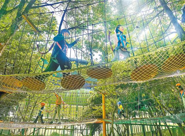 4月4日,两江新区一森林探索营,孩子们在体验丛林飞跃。记者 张锦辉 摄/视觉重庆