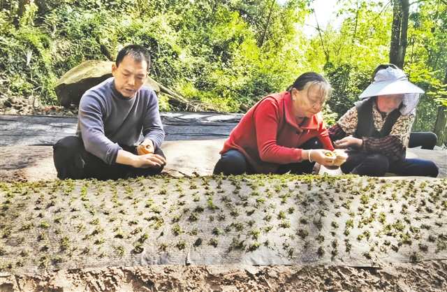 清明时节,谭乾平(左一)带领村民种植苔藓。记者 彭瑜 摄/视觉重庆 |