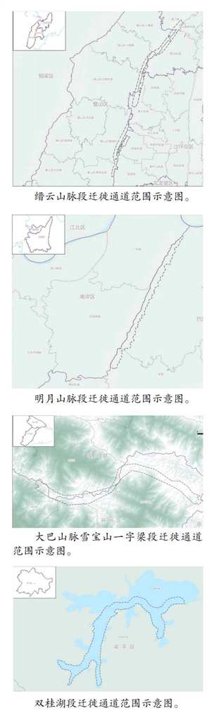 据了解,这9条候鸟迁徙通道包括大巴山脉五里坡上神门湾段、大巴山脉雪宝山一字梁段、缙云山脉段、明月山脉段4条猛禽、鸣禽、攀禽、陆禽迁徙通道,以及长江綦江河支流江津段、长江澎溪河支流汉丰湖段、长江龙溪河支流长寿湖段、长江大宁河支流大昌湖段、双桂湖段5条游禽、涉禽迁徙通道。