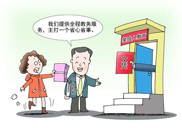 “我们提供全程教务服务,主打一个省心省事。”线上代刷课、线下代签到,期末考试邮寄试卷和答案……记者调查发现,部分中介机构违规为成人教育学生提供从报名到毕业的全程教务服务,而部分高校管理不到位,使其成人教育流于形式,沦为“文凭批发厂”。