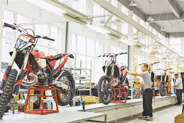 该公司主要研发生产中高端越野竞赛摩托车,目前80%的产品远销俄罗斯、波兰、沙特、马来西亚等国家和地区,今年出口量有望突破一万台。