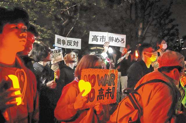 据新华社东京4月8日电 (记者 陈泽安 李林欣)8日晚,大批日本民众在位于东京的国会议事堂前集会,抗议高市早苗政府部署远程导弹、企图解禁杀伤性武器出口等破坏和平宪法的动向。