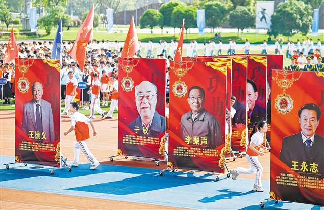 值得一提的是,弘深学院学子们表演的“追星”赢得同学们的阵阵欢呼。钟南山、王永志、屠呦呦、袁隆平……一幅幅印有科学家们的巨幅海报出现在田径场上,同学们通过青春洋溢的舞蹈,展现出了奋力追赶之姿。参与策划的学生表示,希望能通过这样的方式激励同学们追科研之“星”,以引领人类文明进步的科学家为榜样奋力奔跑!