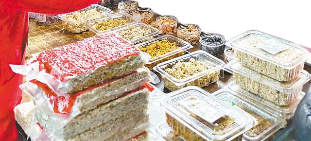 “来尝尝嘛,我们的特色产品怪味胡豆有麻辣的,也有不辣的,很脆。”店门口,阿姨一边摆放试吃品,一边向行人吆喝,吸引不少人驻足购买。