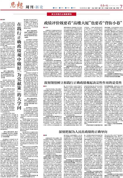 习近平总书记指出:“树立和践行正确政绩观,起决定性作用的是党性。只有党性坚强、摒弃私心杂念,才能保证政绩观不出偏差。”这一重要论断,深刻揭示了党性修养和政绩观的内在逻辑,阐明了树立和践行正确政绩观的根本所在,为新时代党员干部履职尽责、干事创业提供了根本遵循。政绩观问题是一个根本性问题,是党员干部从政履职的价值原点与行动指南,深刻映照着党性修养、宗旨意识与精神境界。新时代新征程,广大党员干部必须始终坚持以党性立身做事,持续加强党性锤炼,不断砥砺初心使命,始终把为民造福作为最大政绩,自觉树立和践行正确政绩观,以实实在在的业绩回应人民期待,为强国建设、民族复兴伟业贡献力量,努力创造无愧于党、无愧于人民、无愧于时代的新业绩。