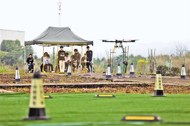 4月13日上午,天空放晴,位于永川区的重疆无人机科技(重庆)有限公司(以下简称重疆科技)训练基地,3名教练正领着10多位学员,眼神专注地操纵着手中的遥控器,空中的无人机时而低空盘旋、精准悬停,时而急速攀升、灵活转向,勾画出一道道美丽弧线。