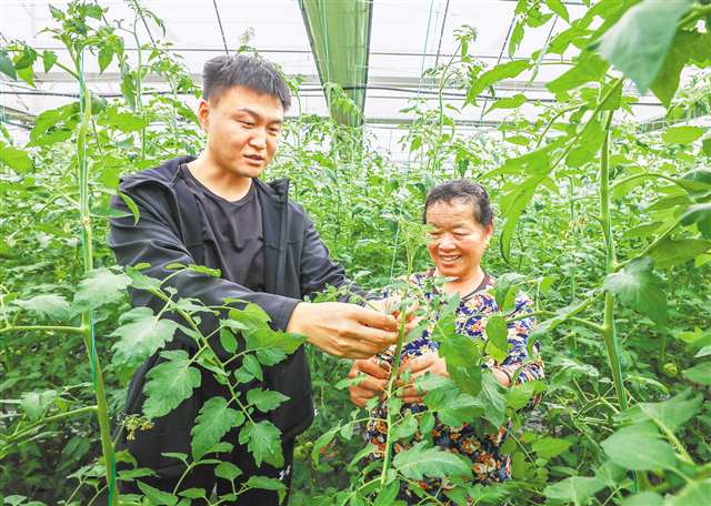 孙华刚(左)正在教授村民蔬菜病虫害防治。通讯员 周振宇 摄/视觉重庆 |