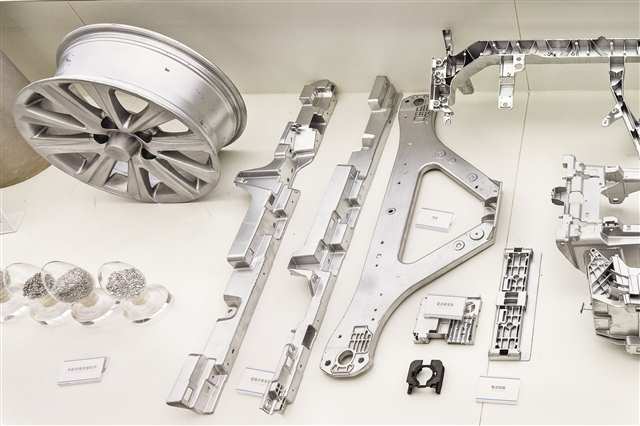 日前,记者走进实验室陈列厅,目光被一个银光闪烁的大尺寸轮毂吸引。按照视觉经验,这个轮毂少说也要30斤,但当记者伸手尝试拎起时,却发现它轻得出人意料。