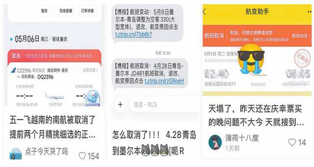 “五一”假期临近,不少人正规划出游。但是记者发现,近期在社交平台上不少网友反映,自己提前预订的航班收到了取消通知。