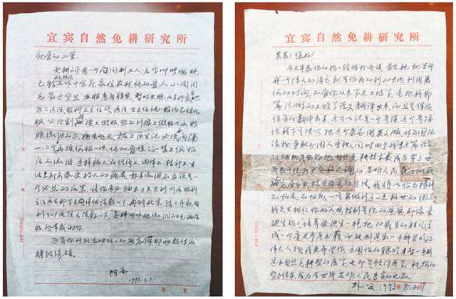 1980年3月,侯光炯院士来到四川省宜宾市长宁县相岭区,创建了当时全国唯一的自然免耕专业研究机构——宜宾自然免耕研究所,推广应用自然免耕技术。“那时候,父亲既要管理所里的工作,还要给学生上课、下地搞科研。虽然很忙,但是他把许多‘小事’一直记在心上。”侯啸碚展开4封家书,纸页虽已泛黄,却字字滚烫。