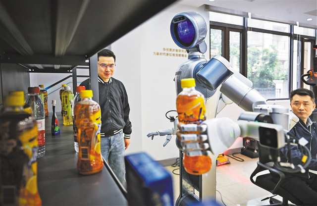位于两江新区的重庆精金机器人有限公司,研发人员在“培训”售货机器人。记者 张锦辉 摄/视觉重庆 |