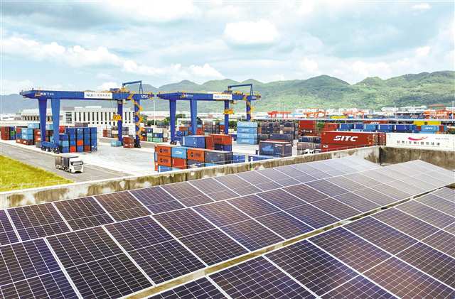 重庆国际物流枢纽园区,安装在陆海新通道重庆无水港仓库屋顶的一排排光伏电板正在发电。记者 张锦辉 摄/视觉重庆 |