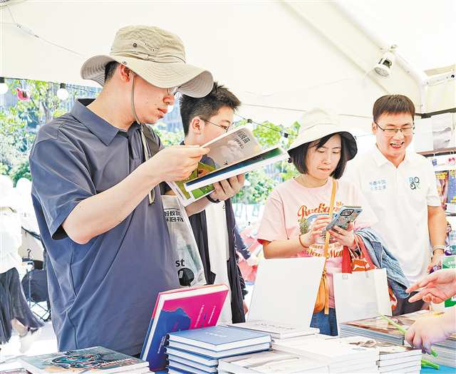 4月25日,两江新区钻石广场,市民在选购书籍。 |