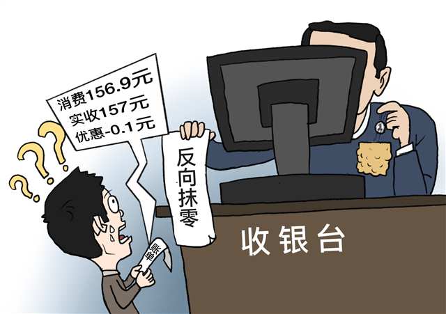 又见“反向抹零”被立案。近日,有消费者在佛山某餐饮店就餐,实际消费156.9元,结账时实收157元,结账单显示“优惠-0.1元”。当地调查发现,该餐饮店收银系统设置计算逻辑不合理,以“四舍五入”方式向上取整结算实际消费金额,涉事商家已被立案调查。