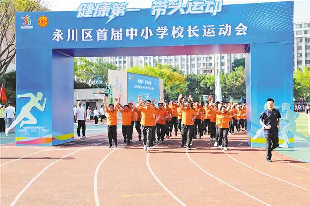 本报讯 (新重庆-重庆日报记者 栗园园)4月25日,永川区兴龙湖小学运动场上呐喊助威声此起彼伏,永川区首届中小学校长运动会在此举行。来自永川区教委、进修学校的相关负责人以及全区教育系统各学校的书记、校长,换上轻便的运动服和运动鞋,在赛场上释放激情、挥洒汗水,通过带头运动向全区师生传递“健康第一”的理念。
