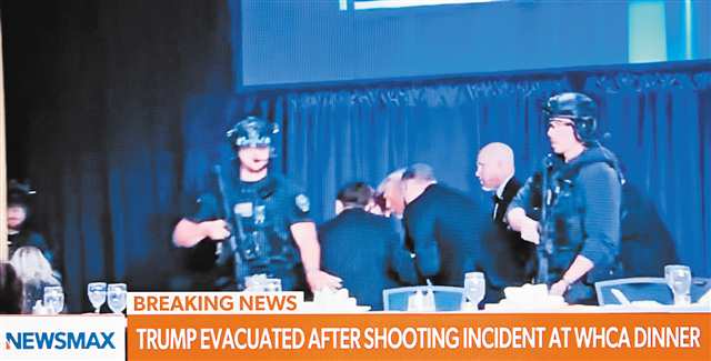 综合新华社4月26日电 美国东部时间25日晚,正在举行白宫记者协会晚宴的华盛顿希尔顿酒店传出枪声。出席晚宴的美国总统特朗普紧急撤离,现场数百名记者和政商界人士趴地避险。特朗普稍后在社交媒体上说,一名涉事枪手已被拘捕。据美媒报道,事件嫌疑人被捕后告诉执法部门,其目标是美国政府官员。