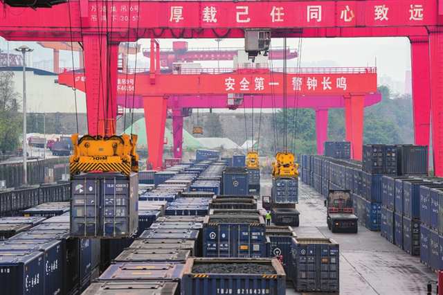 万州港红溪沟作业区,来自澳大利亚、巴西、南非等国的矿石在此转运,铁水联运一片繁忙 摄/黄建桦 |