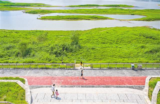 如今,走在平整开阔的步道上,江风轻柔,白鹭不时掠过江面。“现在既能跑步又能拍照,还能逛原生态江滩,太舒服了。”一位每周来打卡的跑友说。