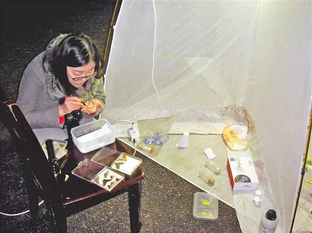“后来,我们把老师也‘忽悠’来了,要了一套专业灯诱设备,开始系统性地采集飞蛾。”她说,有了设备,两人隔三岔五就往山坳里跑,支起幕布、点亮汞灯,守到后半夜才收工。