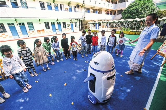 近日,织北幼儿园的孩子们跟着智能机器人和医护人员一起学习健康操。浙江省湖州市吴兴区织里镇儿童健康联盟的“健康快车”走进织里镇织北幼儿园。织里镇卫生院的医护人员通过互动游戏、播放视频等形式给幼儿园孩子讲授秋季传染病预防等基础卫生防护知识,让孩子们从小培养良好的卫生健康意识。