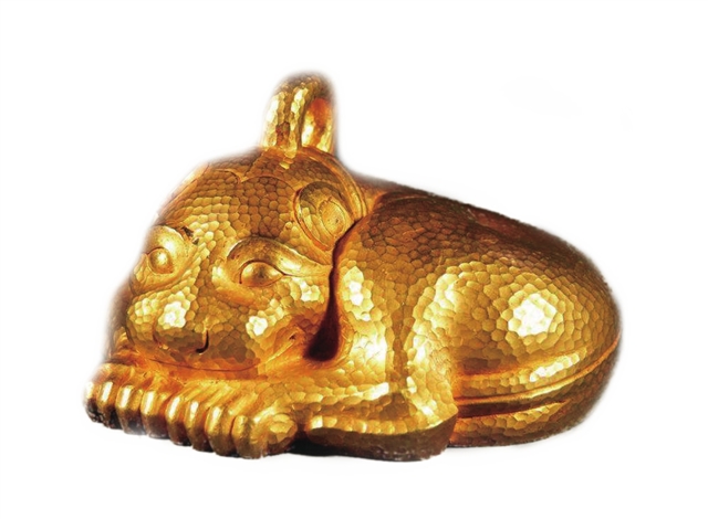 金兽是南京博物院18件“镇院之宝”之一,是迄今为止全国考古发现的最重的一件金器,金属铸造和捶击工艺完美结合的罕见实物,被誉为”国之瑰宝”。金兽究竟是什么动物?文博界至今仍没有一致的定论,有人认为是老虎、有人认为是狮子、有人认为是豹子。