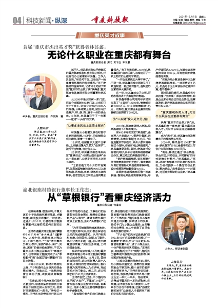 获得“重庆市杰出英才奖”后,林其鑫的第一感觉是“重庆重视各类人才,无论什么职业在这里都有舞台”。