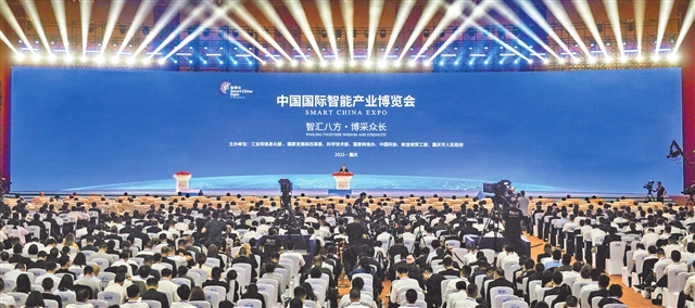 九月四日下午,二○二三中国国际智能产业博览会开幕。重庆日报记者 张锦辉 谢智强 摄 |