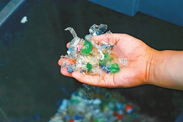 这是废弃塑料瓶经过破碎减量后得到的塑料片(10月30日摄)。新华社记者 林光耀 摄 |